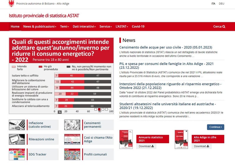 La homepage dell'Istituto provinciale di statistica ASTAT (Foto: ASP/ASTAT)