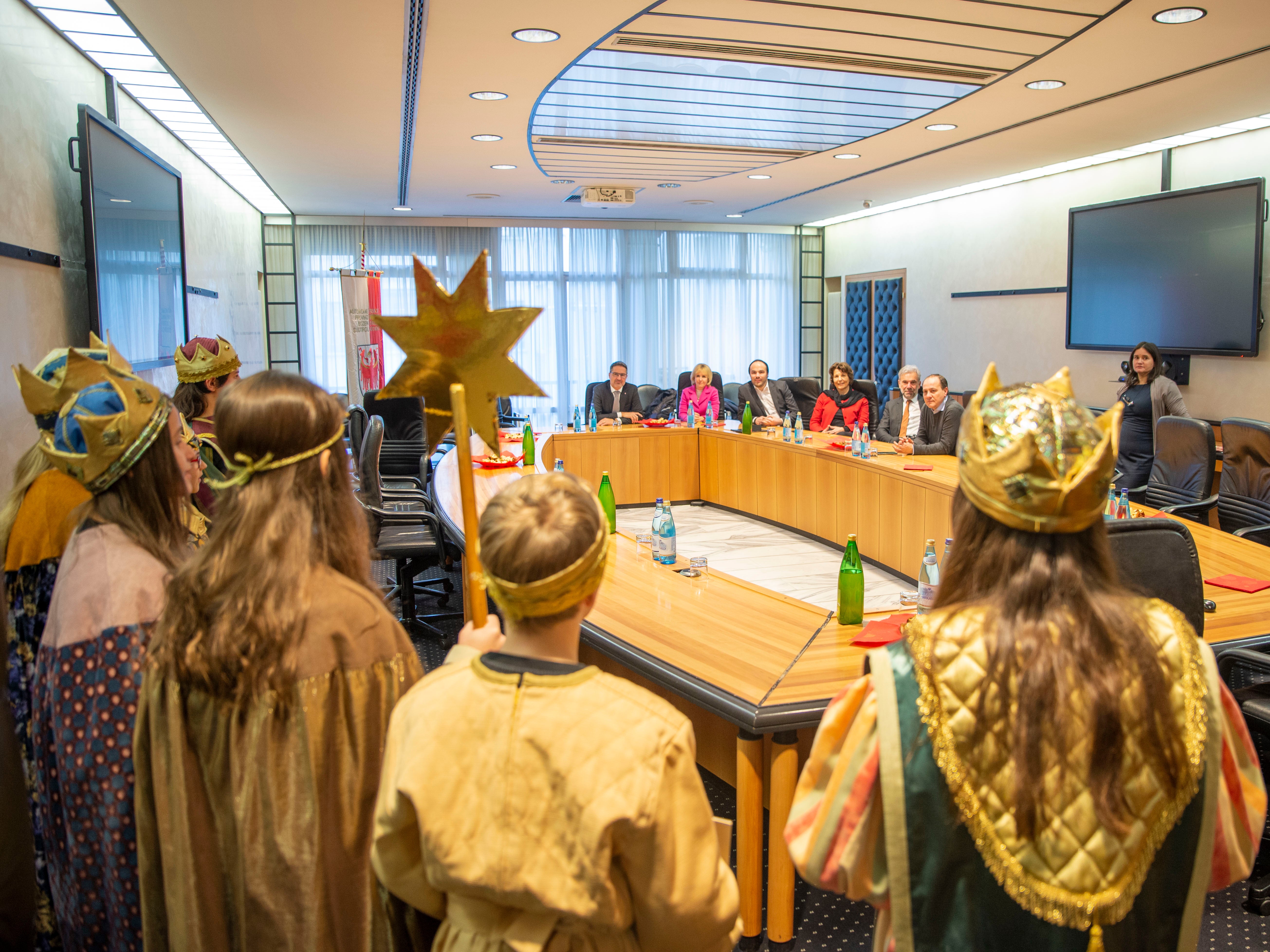 I Cantori della stella provenienti da Tiles, Gereut e Pinzago hanno portato oggi la loro benedizione alla Giunta provinciale. Attualmente oltre 200 gruppi di Cantori stanno raccogliendo le offerte.