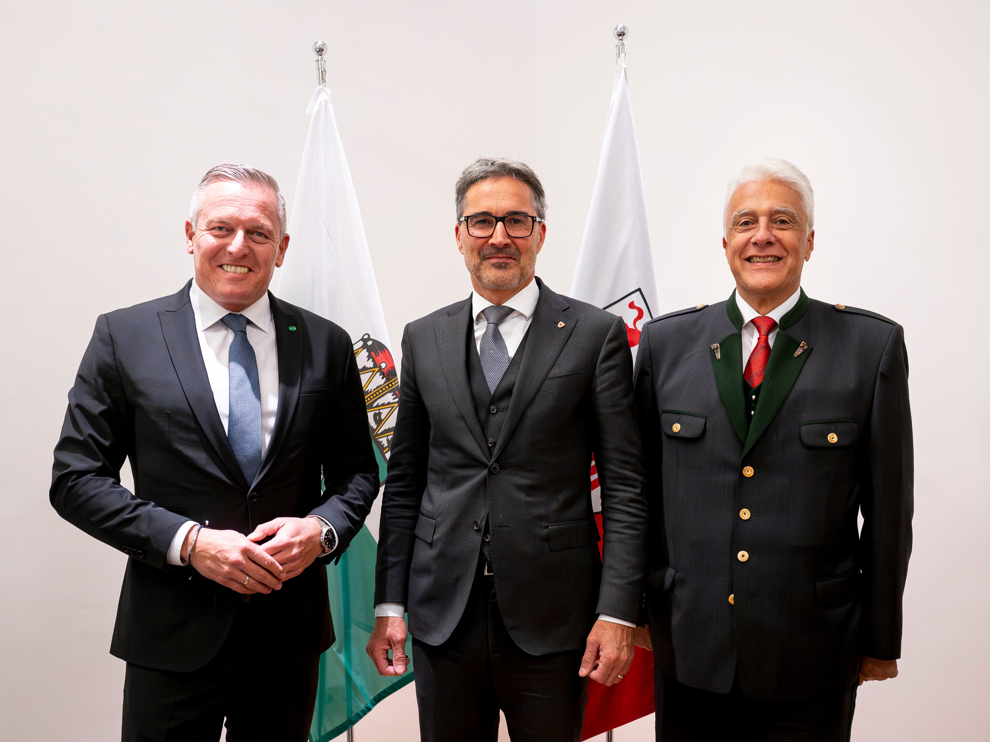 - Il governatore della Stiria Mario Kunasek, il presidente della Provincia autonoma di Bolzano Arno Kompatscher e il console generale austriaco a Milano Wolfgang-Lukas Strohmayer a Palazzo Widmann. (Foto: USP/Fabio Brucculeri) » [IMG 1 MB]