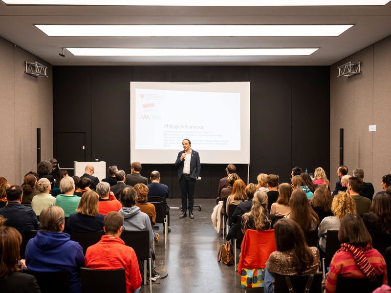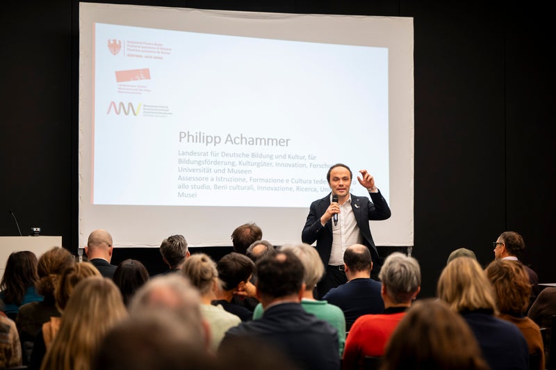 - All'inaugurazione, l'assessore provinciale Philipp Achammer ha sottolineato: “I musei sono luoghi importanti per la partecipazione democratica. È fondamentale coinvolgere attivamente i giovani e offrire loro spazi in cui possano esprimere le loro prospettive”. (Foto: USP/Fabio Brucculeri) » [IMG 3 MB]