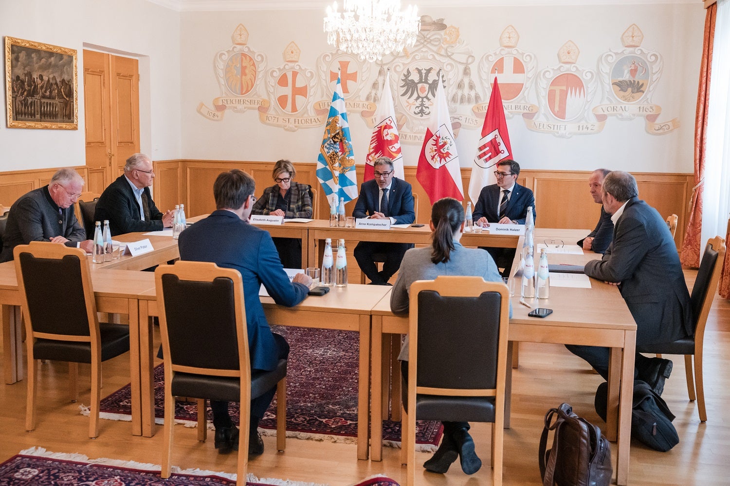 NOVACELLA (USP). Il 24 ottobre il presidente della Provincia autonoma di Bolzano Arno Kompatscher ha incontrato a Novacella, per uno scambio politico, il presidente del Land Vorarlberg Markus Wallner, il vicepresidente del Tirolo Josef Geisler e il ministro dell'Interno della Baviera Joachim Hermann. Al centro dell'attenzione vi erano temi quali il traffico di transito, il mercato del lavoro, la politica di coesione, l'economia e la sicurezza. Kompatscher ha sottolineato l'importanza di una stretta cooperazione regionale per trovare soluzioni comuni alle regioni alpine.